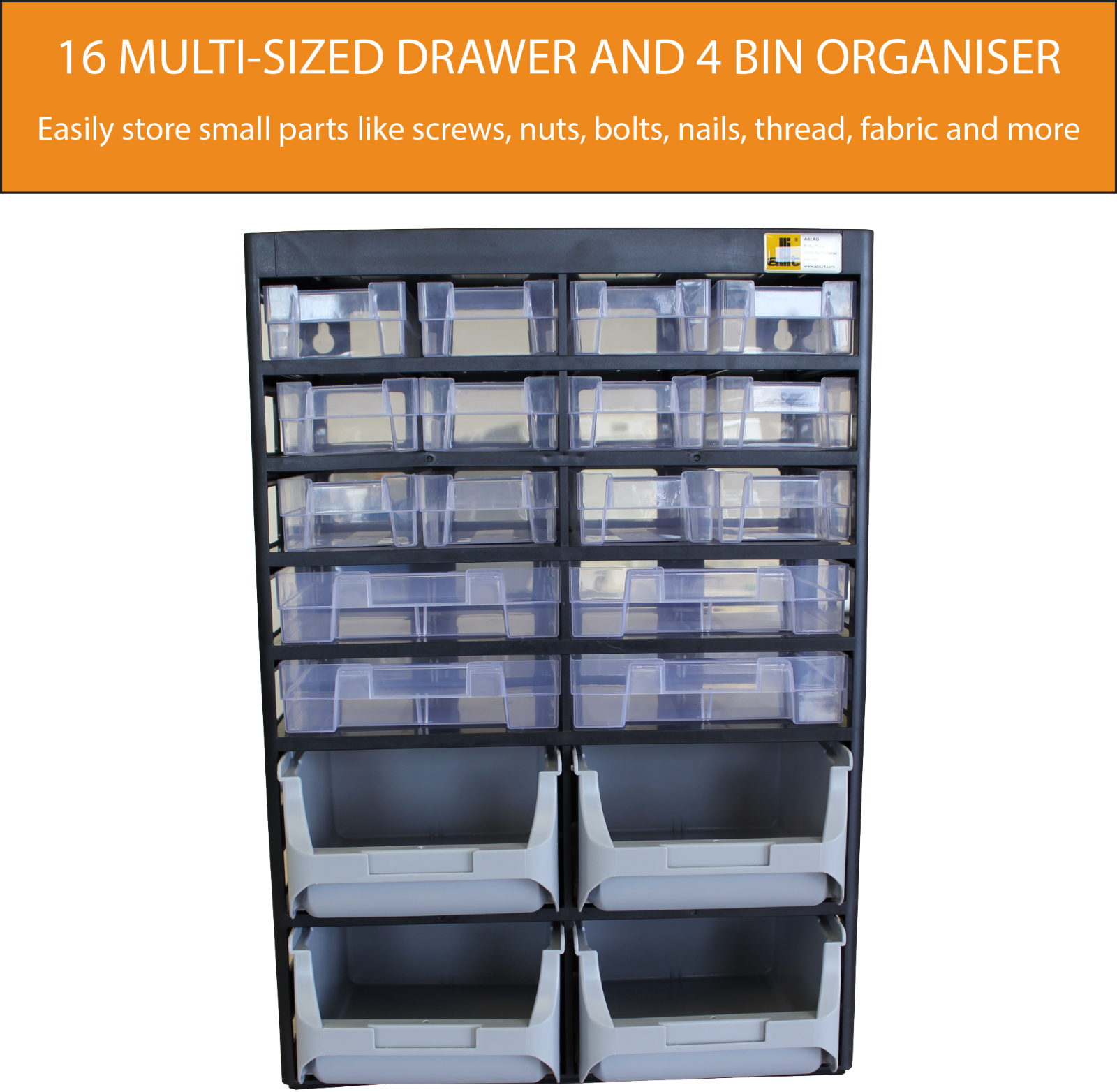 16 Drawer And Bin Parts Organiser Cabinet Multi Use Wall Mount Tool Storage Unit Ebay